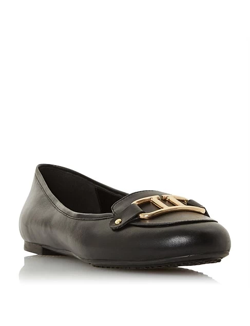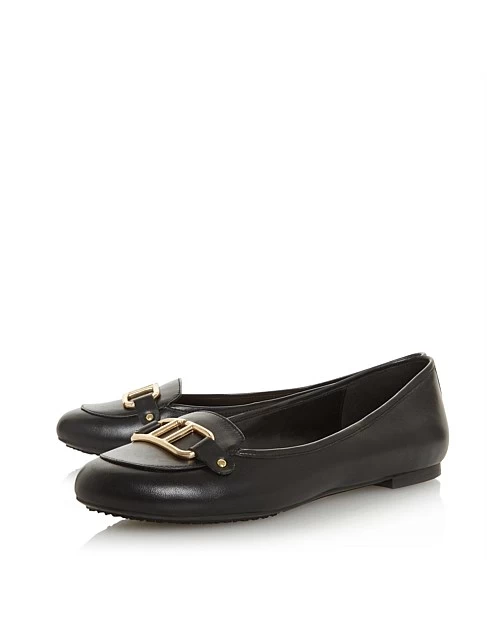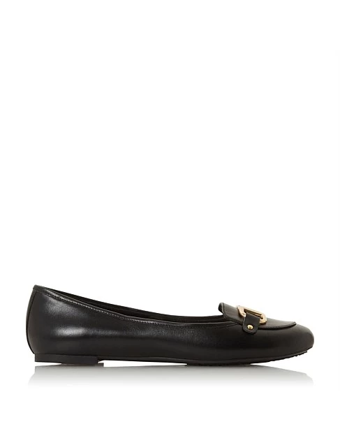 This timeless loafer from Dune is perfect for versatile styling. Showcasing a metal band detail with a comfortable rounded toe. It’s an everyday staple for teaming with smart-casual looks. – Heel Height: 0.5cm